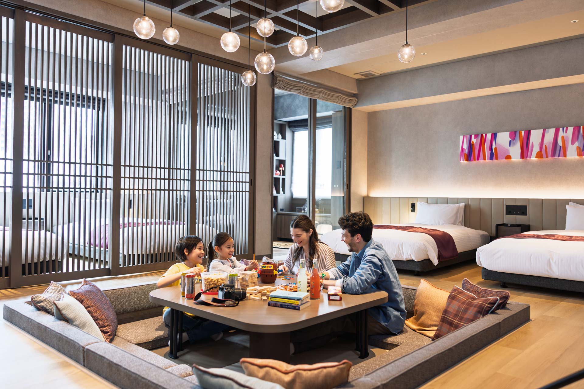 まるで隠れ家のようなRECEPTION棟を抜けると、その先に現れるのはGUEST棟。うらなんばの路地裏を思わせる客室は、「えん」と「りら」の二つのカラーで彩られ、部屋ごとに異なるコンセプトが楽しめます。家族みんなで、仲間同士で、一泊から長期滞在まで、旅の目的に合わせてお選びいただけます。